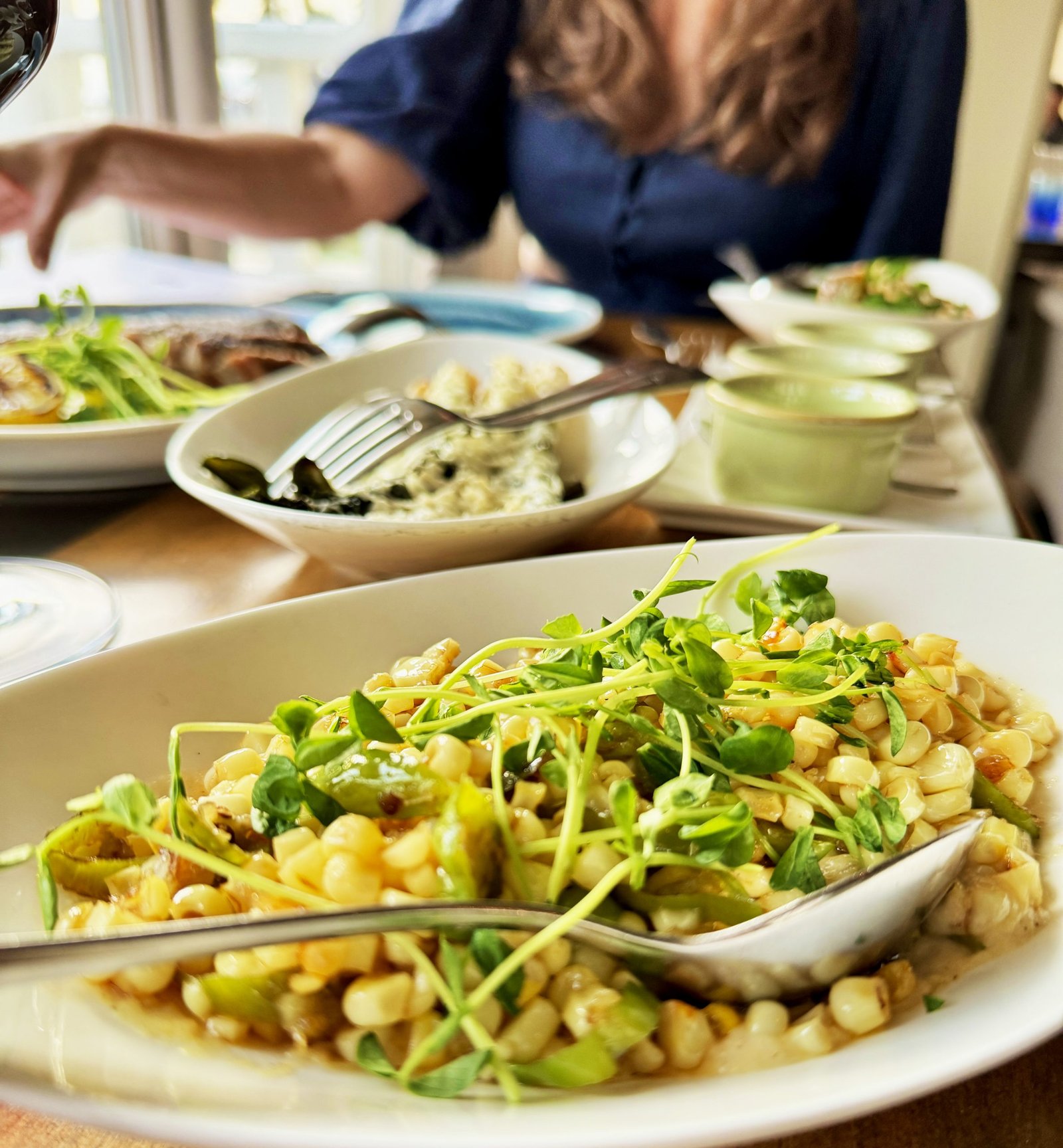 The Roasted Baby Leek with Parmigiano, thyme, extra virgin olive oil, and Snap Peas paired with rocket pesto, pine nuts, and oven-dried cherry tomatoes provided a slightly sweet yet savory, robust flavor. Be sure to pay attention to the Corn and Shishito Pepper dish, boasting a delectable blend of corn puree, shallots, and honey—an exquisite representation of California’s culinary diversity.