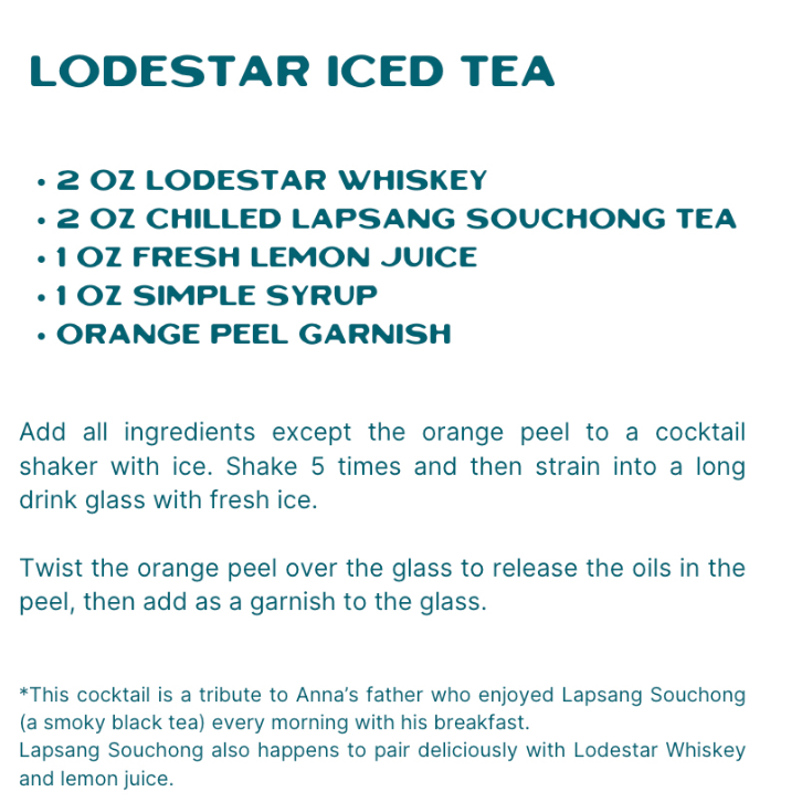 We’re feeling all kinds of California coastal vibes with this signature cocktail, the Lodestar Iced Tea, created by Lodestar Whiskey co-founders and entertainment industry veterans, Anna Axster and Wendelin von Schroder.