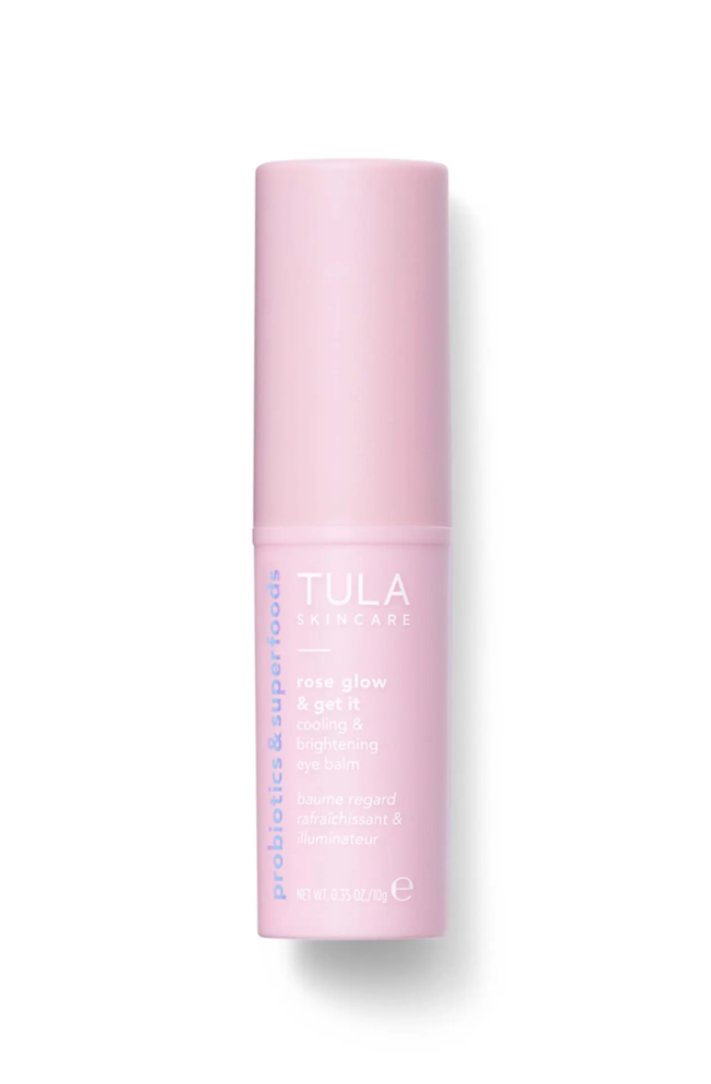 TULA Skincare Rose Glow Get It Cooling Brightening Eye Balm, $32 TULA Skincare’s Rose Glow Get It Cooling Brightening Eye Balm Rose Glow & Get It wakes up eyes in one swipe for a refreshed and energized look. Caffeine helps combat dark circles and puffiness, while rosehip oil, a plant-based retinol rich in vitamin C, thwarts free radical damage, improving the skin’s appearance over time. The convenient balm stick formula can easily be applied under or over makeup to give tired eyes a boost throughout the day.
