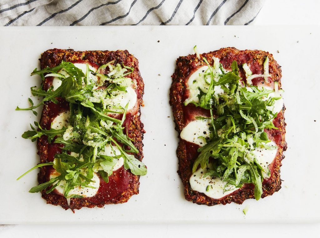 “This is my favorite vegetable crust pizza and it’s best with zucchini from the farmer’s market or straight from your garden,” says chef Helene Henderson of Malibu Farm. “After baking, the crusts can last for several days in the fridge or even longer in the freezer, making it a great quick item to whip up for dinner.”