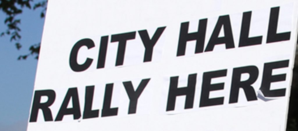 Let’s gather and walk to Urban Outfitters and then our City Hall.