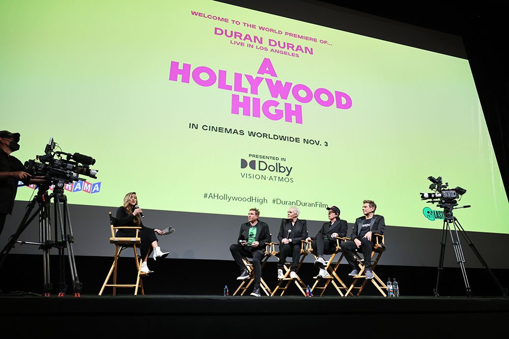 Duran Duran’s A HOLLYWOOD HIGH docu-concert film hits big screens worldwide in over 40 countries starting November 3. It premiered in Los Angeles on Thursday at the Dolby Theatre as well as last night in London at Vue West End in Leicester Square via Dolby Atmos and Dolby Vision, offering viewers an up-close-and-personal look inside the illustrious career of the popular English new wave band.