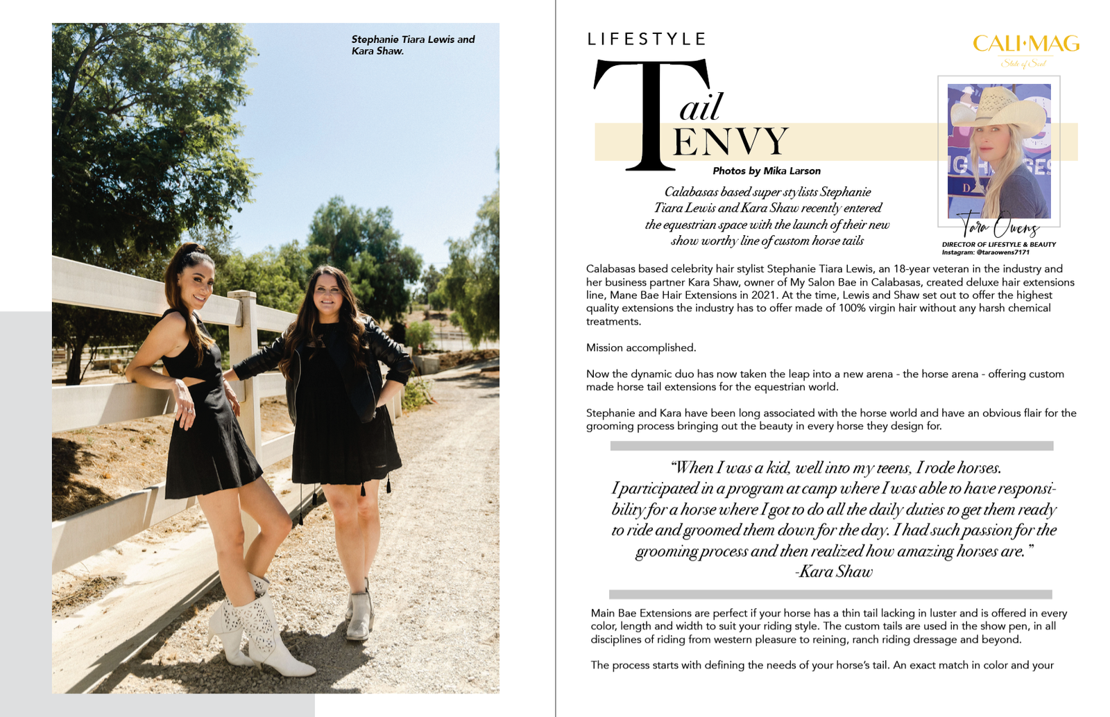 Calabasas based super stylists Stephanie Tiara Lewis and Kara Shaw recently entered the equestrian space with the launch of their new show worthy line of custom horse tails