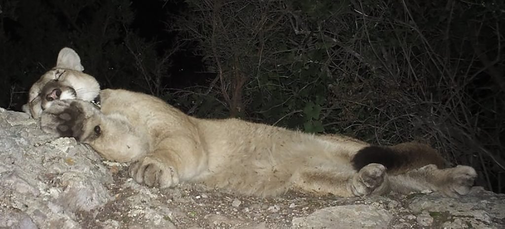 The National Park Service’s research has demonstrated that mountain lions in the Santa Monica Mountains are facing extinction because of genetic collapse from inbreeding. The 101 Freeway has effectively cut them off from the rest of the world, causing them to mate with their daughters, granddaughters (like P-56), great-great granddaughters etc.,. Cougars from the north bringing new genetic material can’t get past the ten-lane 101, and cats south of the freeway trying to find new territory usually die trying.