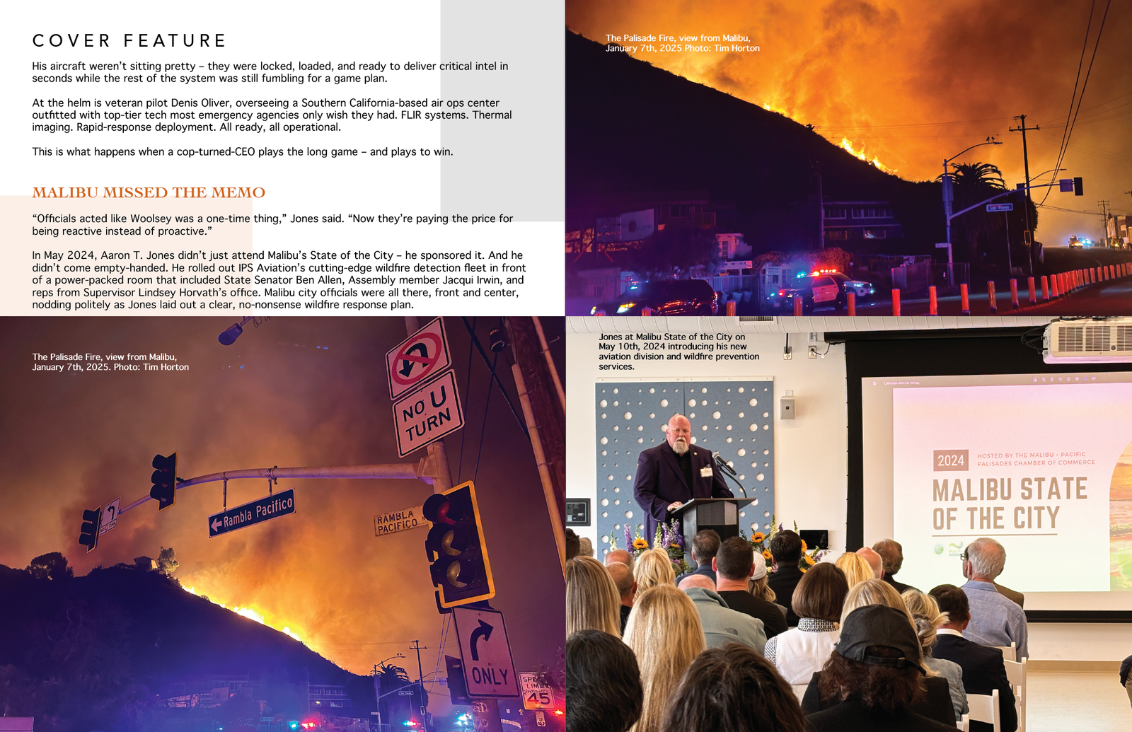 In May 2024, Aaron T. Jones didn’t just attend Malibu’s State of the City – he sponsored it. And he didn’t come empty-handed. He rolled out IPS Aviation’s cutting-edge wildfire detection fleet in front of a power-packed room that included State Senator Ben Allen, Assembly member Jacqui Irwin, and reps from Supervisor Lindsey Horvath’s office. Malibu city officials were all there, front and center, nodding politely as Jones laid out a clear, no-nonsense wildfire response plan.